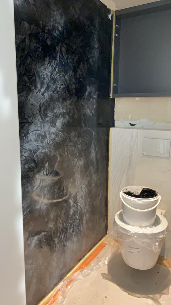 Marmorino floor is basisch door de samenstelling van het poeder. Een basisch omgeving is een slechte voedingsbodem voor schimmels dus de kans op schimmel in een badkamer die met marmorino floor is behandeld is klein.